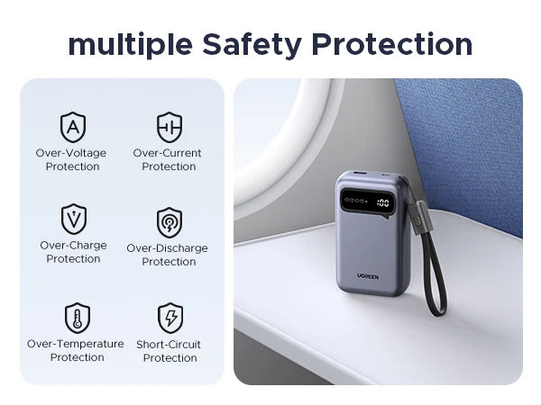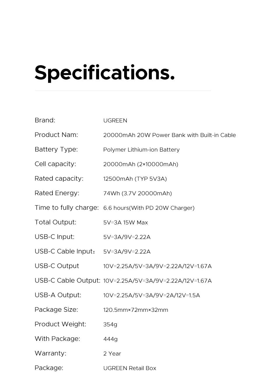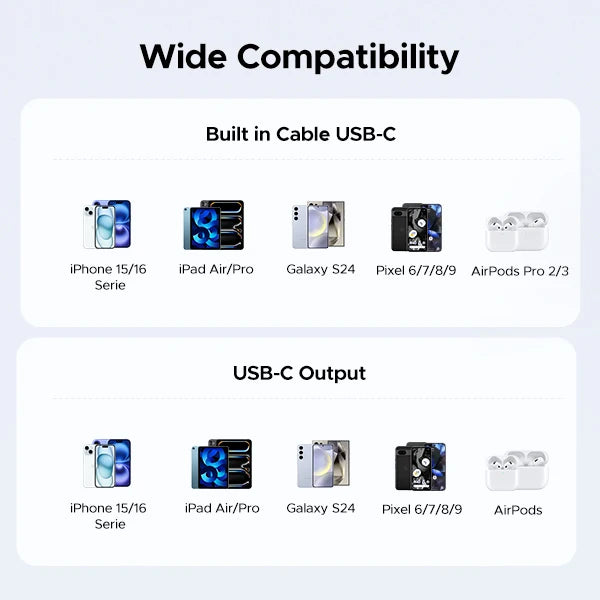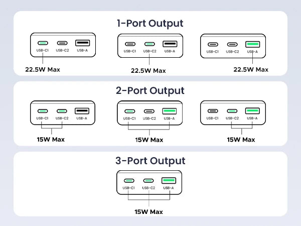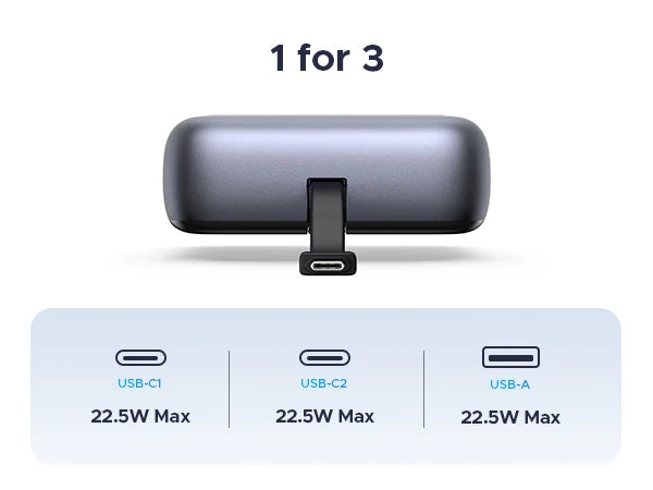 3 Ports Output: Type-C Cable/Type-C/USB-A
