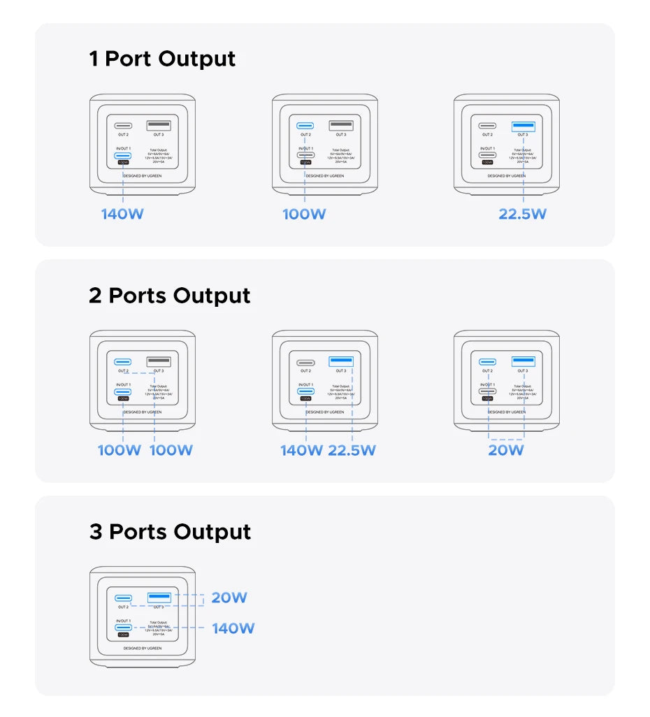 145W Max 3 Ports Output: Type-C 1 Type-C 2 UAB-A