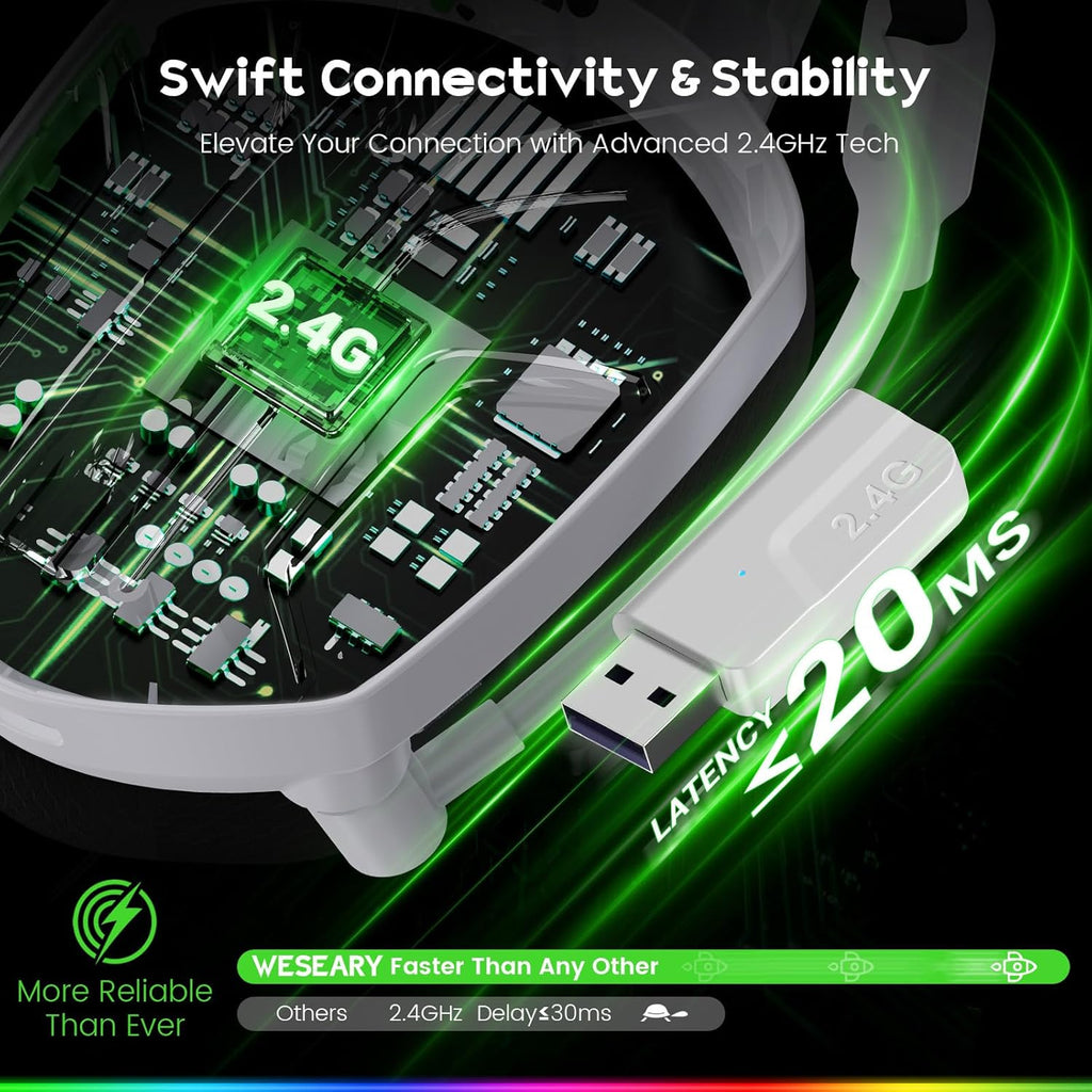 Stay ahead of the competition with lightning-fast audio response. Enjoy ā¤20ms latency in 2.4GHz dongle mode for precision-critical gaming, while Bluetooth mode offers