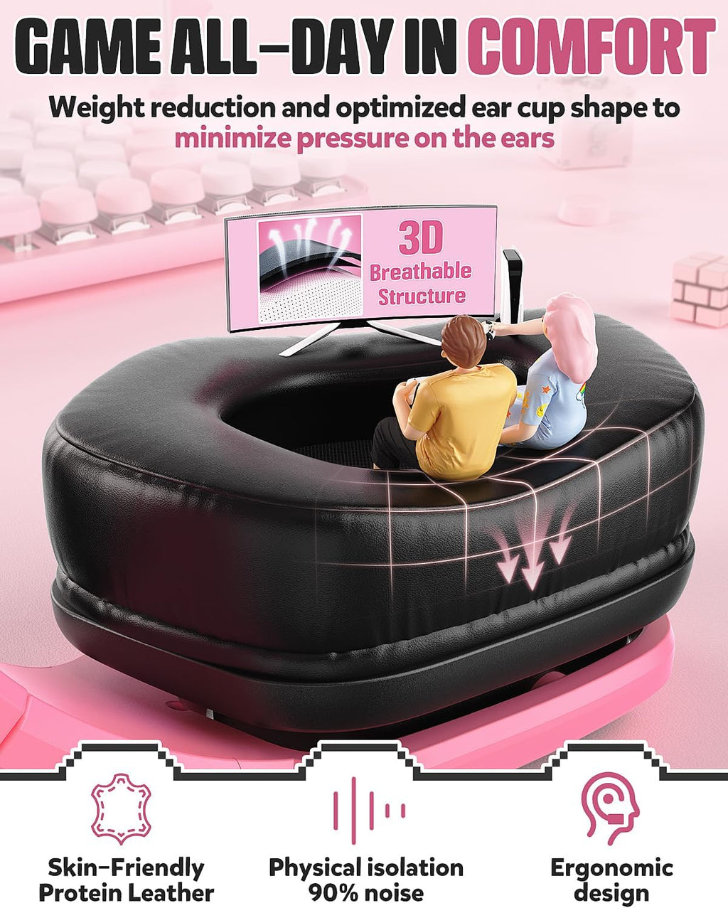 š§ Comfortable, Noise-Isolating Ear Cushions ā Premium synthetic leather ear cushions provide a soft, plush fit while effectively blocking external noise, so you can fully immerse yourself in every game.