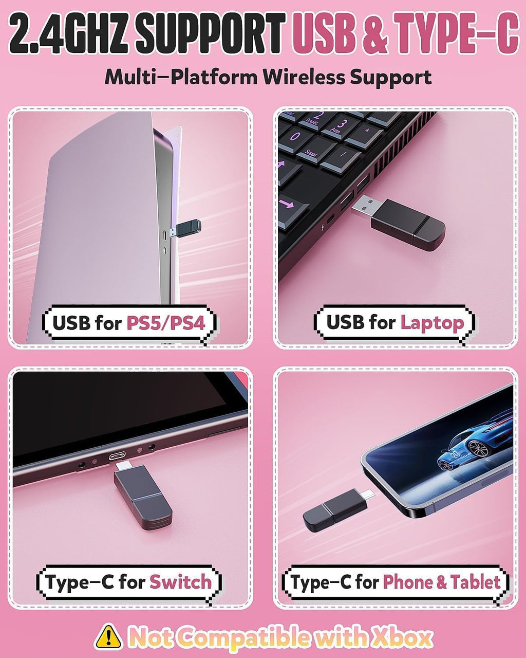 - USB-A Dongle: PC, PS4, PS5, and laptops